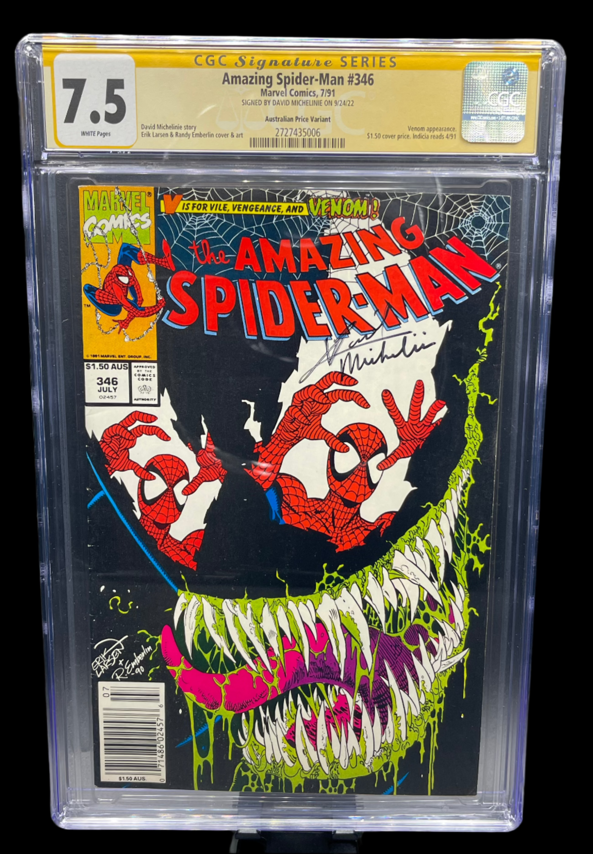The Amazing Spider-Man Vol. 1 #346C 1991 CGC 7.5 Signature Series Michelinie Australian Price Variant APV Marvel Comics