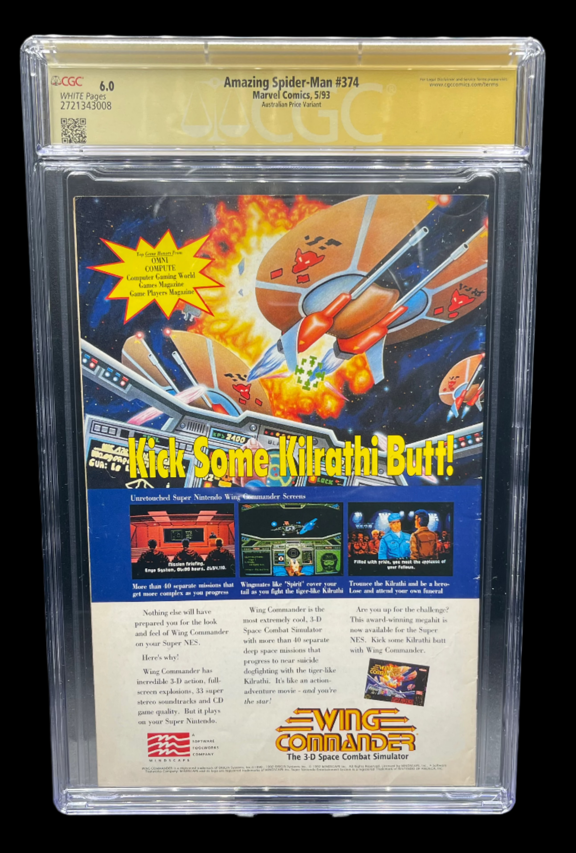 Amazing Spider-Man Vol. 1 #374C 1992 CGC 6.0 Signature Series Bagley Australian Price Variant APV Marvel Comics